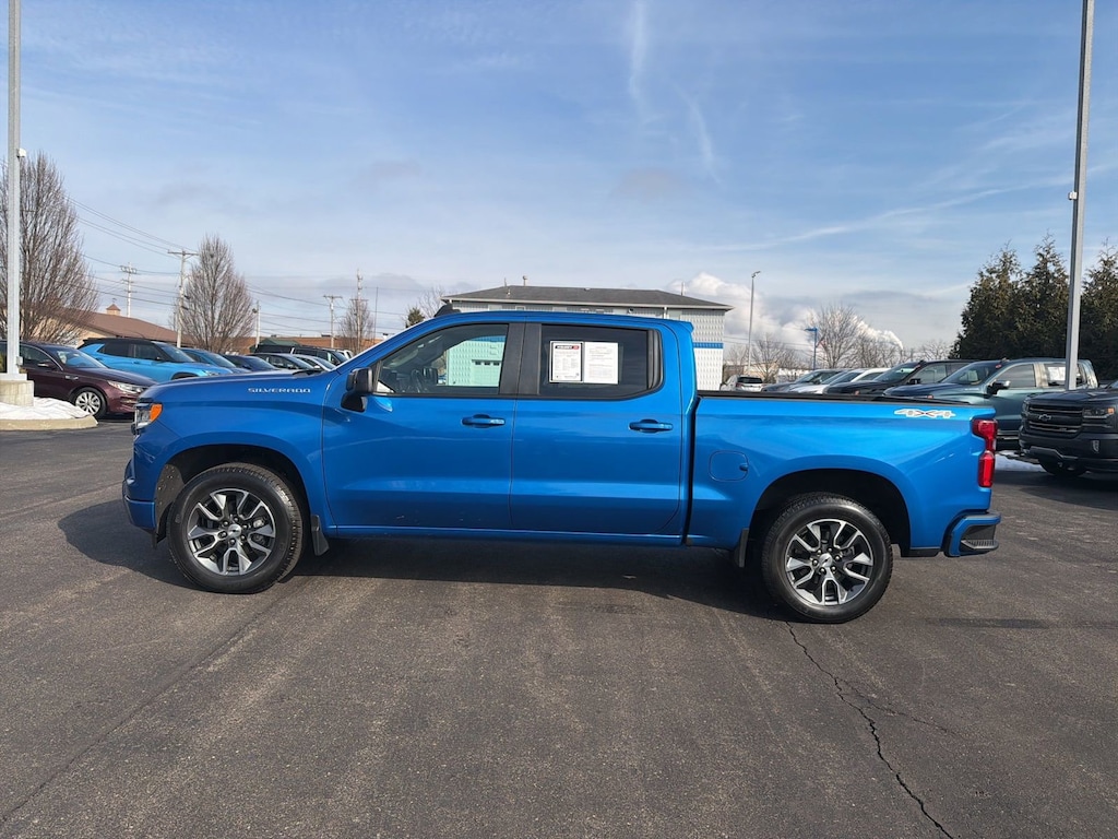 Certified. **AUTOCHECK ONE OWNER**, **BLUETOOTH**, **FUEL EFFICIENT**, **HEATED MIRRORS**, **HEATED SEATS**, **HEATED STEERING WHEEL**, **KEYLESS ENTRY**, **LOTS OF SPACE**, **NEW CAR TRADE**, **ONSTAR**, **REAR BACKUP CAMERA**, **REMOTE START**, **SIRIUS/XM SATELLITE RADIO**, **TOW PACKAGE**, Silverado 1500 RST, 4D Crew Cab, 2.7L I4 Turbocharged DOHC 16V LEV3-SULEV30 310hp, 8-Speed Automatic, 4WD, Glacier Blue Metallic, Black Cloth, 10-Way Power Driver Seat w/Lumbar, 12.3 Multicolor Reconfigurable Digital Display, 120-Volt Bed Mounted Power Outlet, 120-Volt Interior Power Outlet, 6-Speaker Audio System, All-Star Edition, Auto-Locking Rear Differential, Bluetooth® For Phone, Chevrolet Connected Access Capable, Chevytec Spray-On Black Bedliner, Color-Keyed Carpeting Floor Covering, Convenience Package, Deep-Tinted Glass, Dual Rear USB Ports (Charge Only), Dual-Zone Automatic Climate Control, Electric Rear-Window Defogger, Electrical Steering Column Lock, Electronic Cruise Control, EZ Lift Power Lock & Release Tailgate, Front Frame-Mounted Black Recovery Hooks, Front LED Fog Lamps, Front Rubberized Vinyl Floor Mats, HD Rear Vision Camera, Heated Driver & Front Outboard Passenger Seats, Heated Power-Adjustable Outside Mirrors, Heated Steering Wheel, High Capacity Suspension Package, High Gloss Black Mirror Caps, Hitch Guidance, Inside Rear-View Mirror w/Tilt, Keyless Open & Start, LED Cargo Area Lighting, OnStar & Chevrolet Connected Services Capable, Power Front Windows w/Driver Express Up/Down, Power Front Windows w/Passenger Express Down, Power Rear Windows w/Express Down, Preferred Equipment Group 1SP, Protection Package, Rear 60/40 Folding Bench Seat (Folds Up), Rear Rubberized-Vinyl Floor Mats, Rear Wheelhouse Liners, Remote Vehicle Starter System, SiriusXM w/360L, Standard Tailgate, Steering Wheel Audio Controls, Theft Deterrent System (Unauthorized Entry), Trailering Package, Wi-Fi Hot Spot Capable, Wrapped Steering Wheel. 18/21 City/Highway MPG
